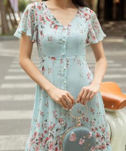 Mô tả: đầm cổ tim đính hạt tay cánh tiên bo eo 1 tầng