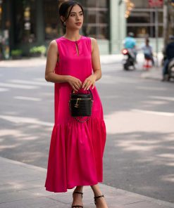 * Kiểu dáng: đầm cổ tròn, tùng dưới xòe nhẹ